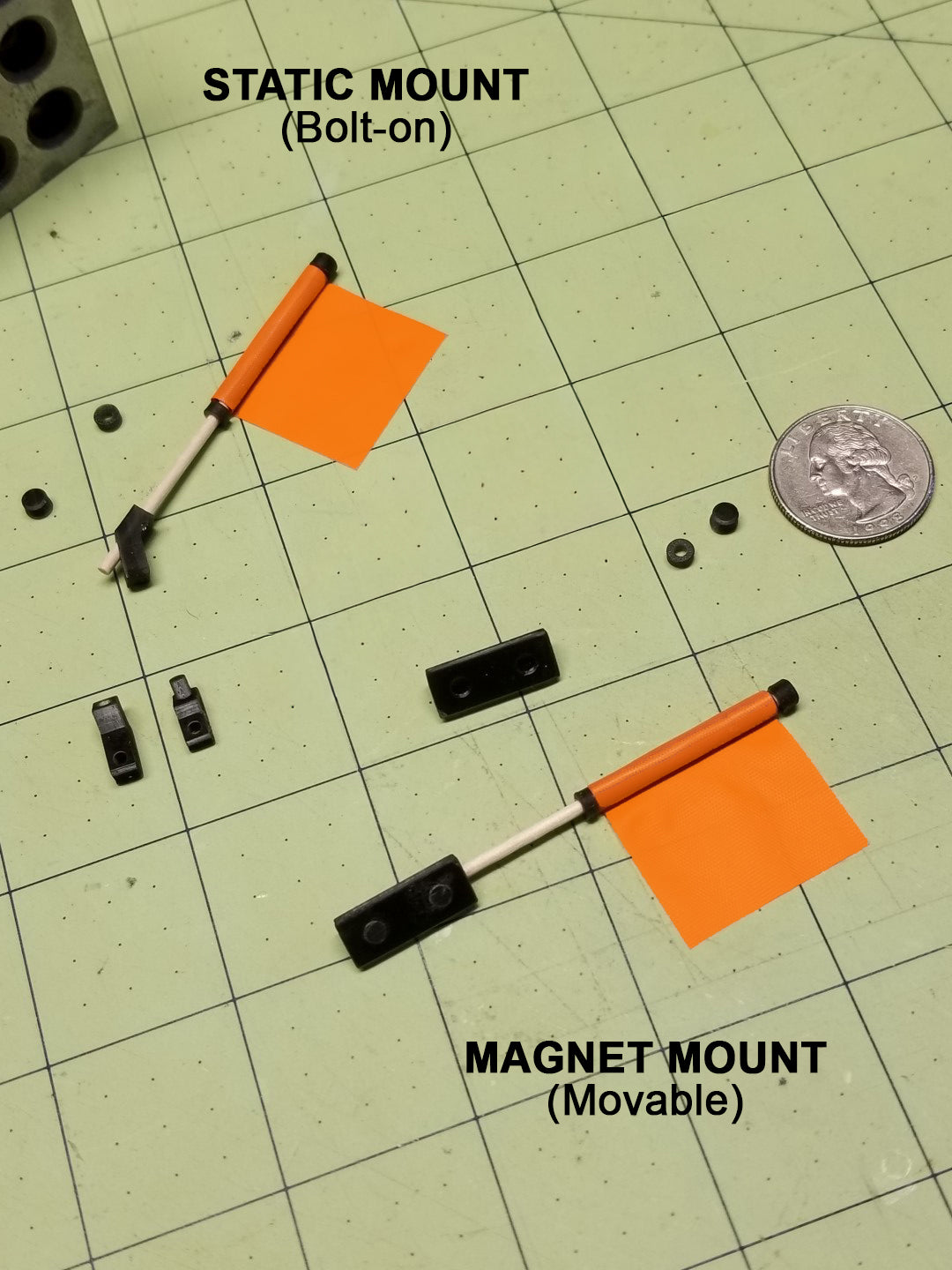 These flags can be mounted to your truck, trailer, and heavy construction equipment. The flags are approximately 1-inch square.