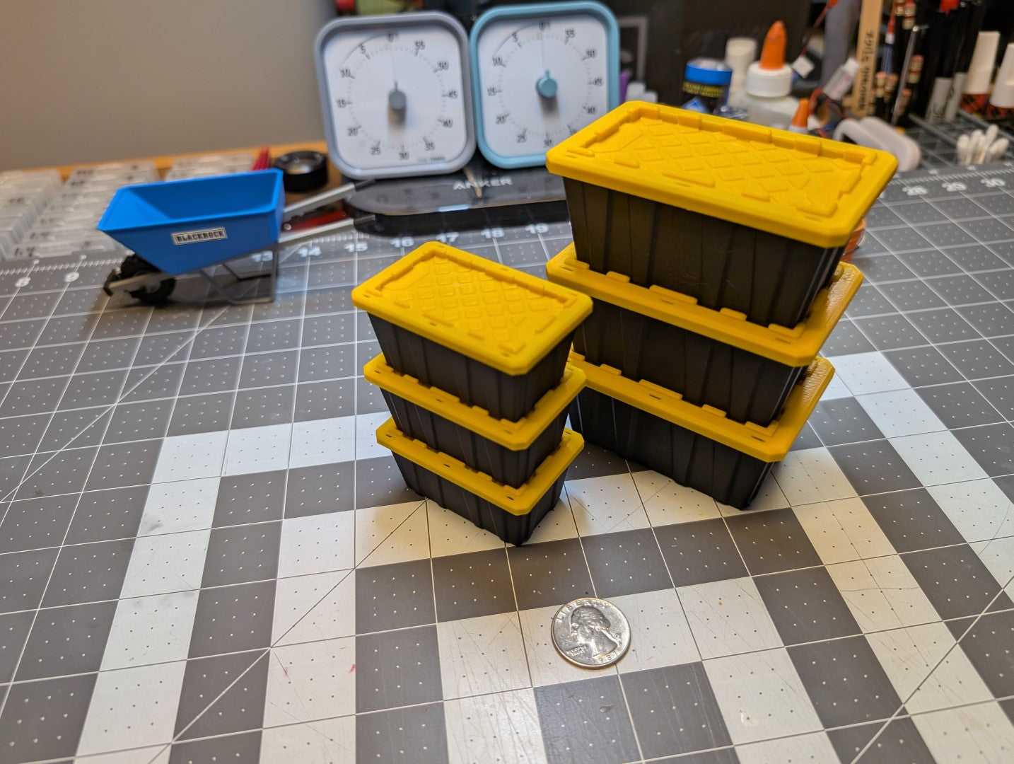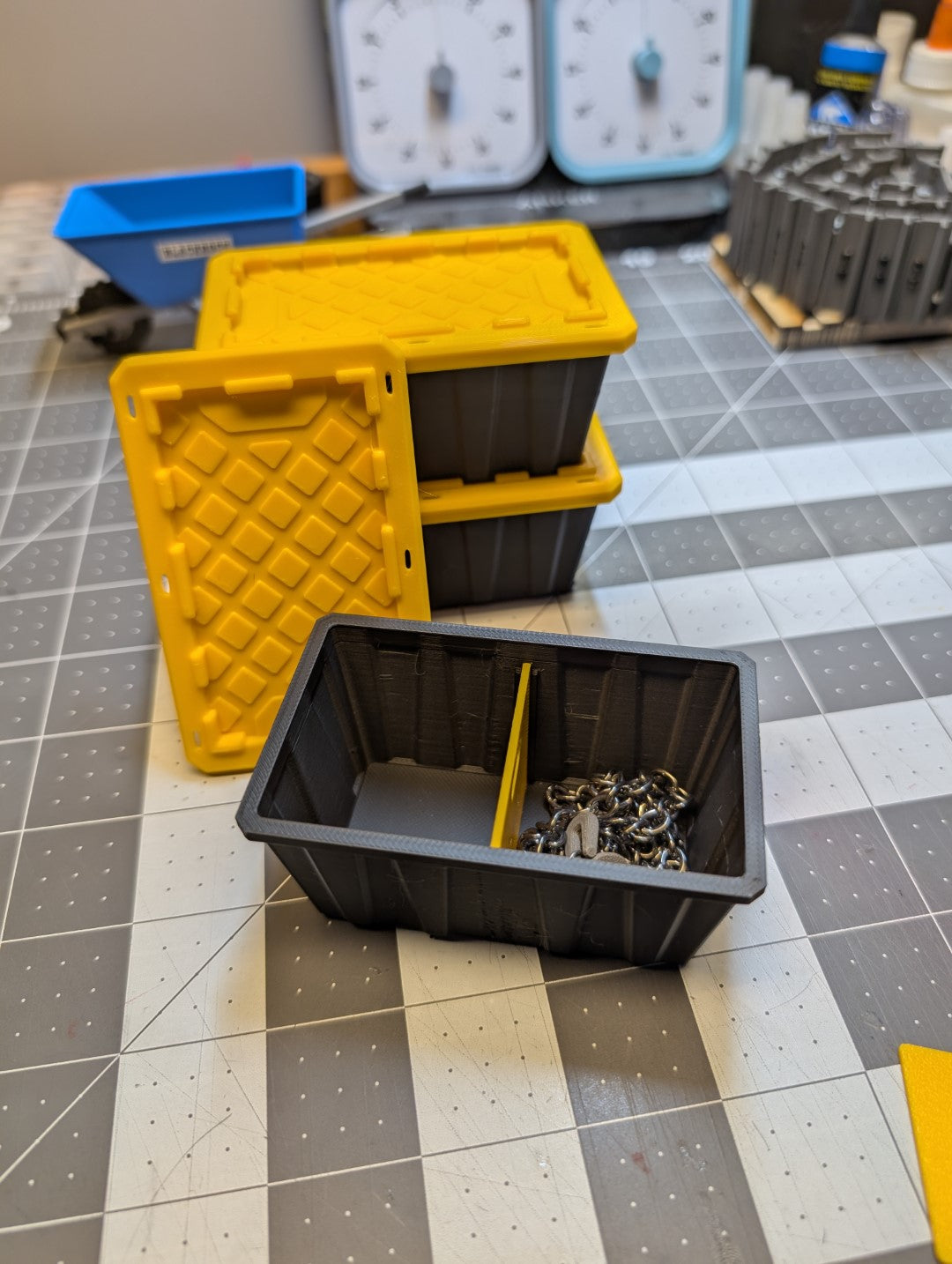 Upgrade your scale garage, workshop, or crawler scene with these iconic "black and yellow" style storage bins. Designed in-house with precision CAD and manufactured using high-quality scale processes, these totes bring a touch of everyday realism to your 1/10 or 1/14 scale builds.